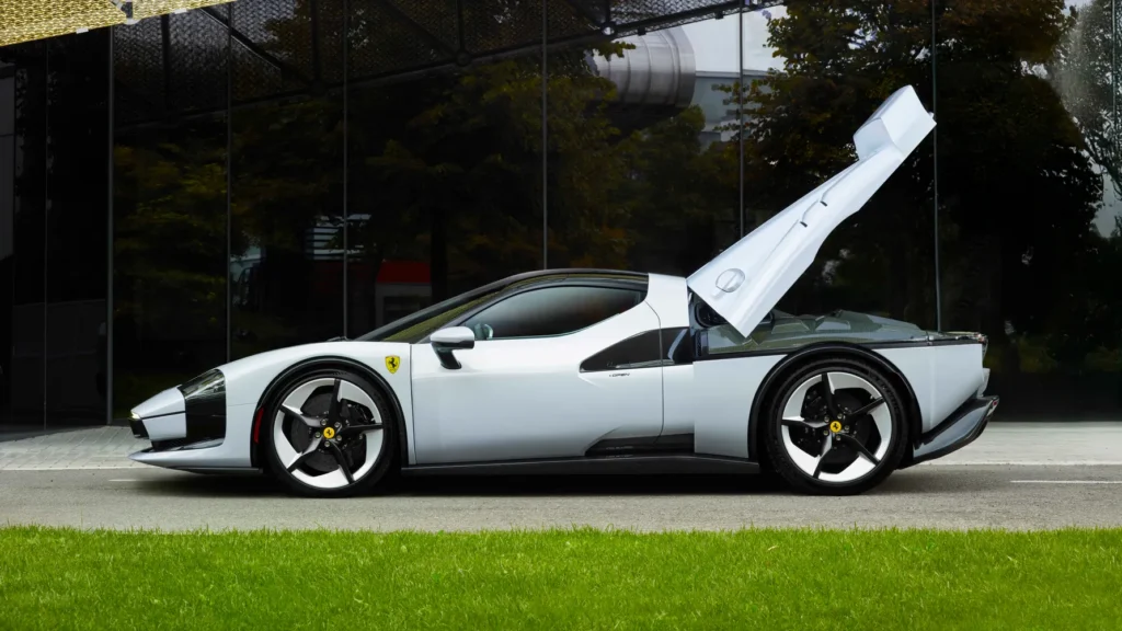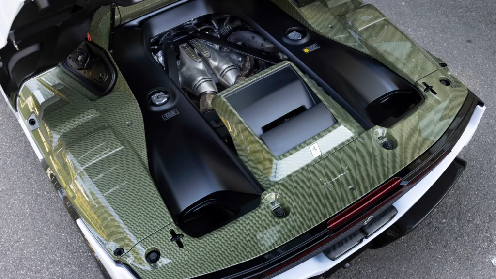 Och lacken? En specialframtagen Bianco SC40, framtagen enbart för denna bil â en nytolkning av Ferraris traditionella rosso-passion, dĂ€r vitt symboliserar renhet, teknik och modernitet.