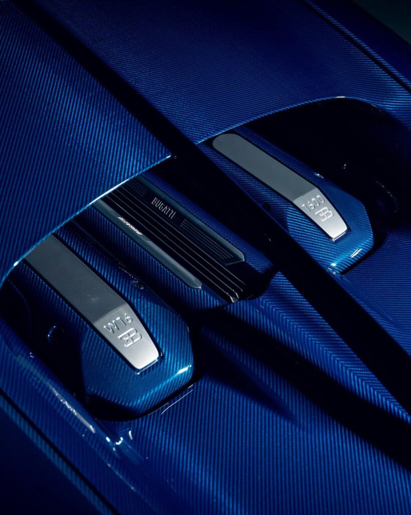 Under den transparenta motorluckan vilar en 8,0-liters W16 med fyra turboaggregat – samma typ av motor som definierade Bugattis moderna era.