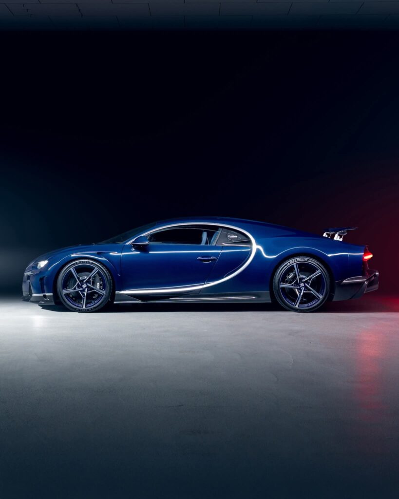 Den här specifika bilen, en 2023 års Chiron Super Sport, tillhör en exklusiv skara på endast 80 exemplar i hela världen. Den representerar den mest aerodynamiskt fulländade versionen av Chiron, skapad med ett enda syfte – att förena extrem fart med absolut stabilitet och elegans.