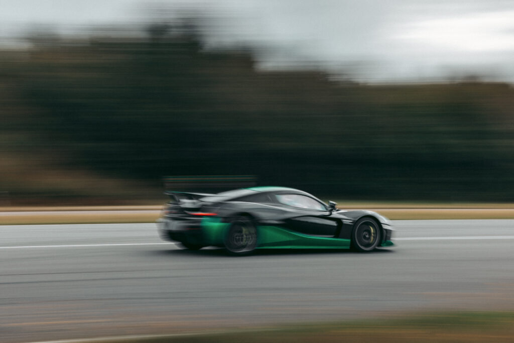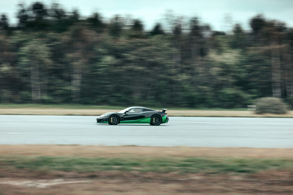 ”Man tittar rakt bakåt, ser landskapet fly bort i en rasande fart och känner hur nacken trycks framåt – samma känsla man annars får vid en brutal inbromsning. Varje liten rörelse på ratten måste vara extremt försiktig, allt sker i backspegeln. Det är helt onaturligt för hur bilen är byggd, men Nevera flög igenom det som ännu ett rekord.”