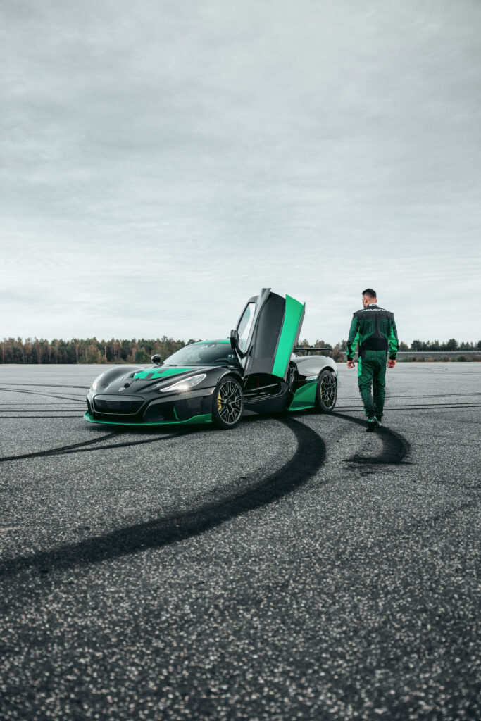 Nevera slog rekordet i sin speciella Time Attack Edition, en limiterad version på bara 12 exemplar. Lackeringen i Squadron Black med lysande Lightning Green-detaljer är inspirerad av naturens egen dramatik – det elektriska gröna ljus som kan synas före en storm.
