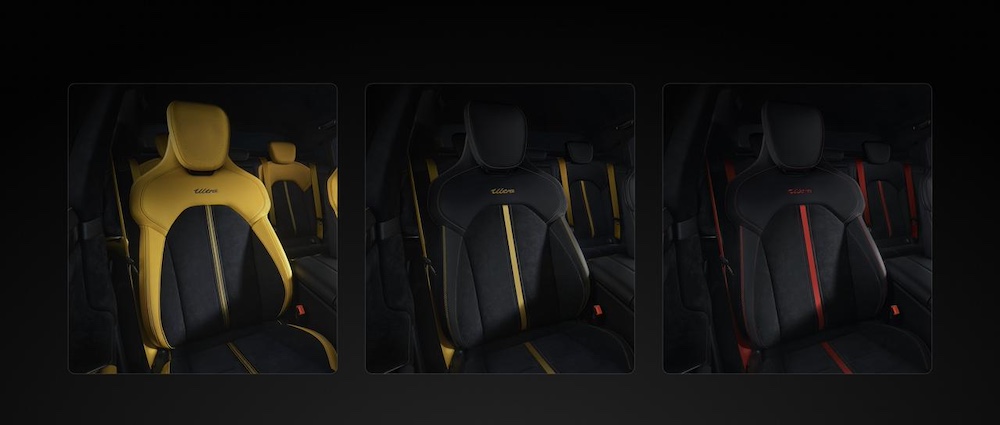 Färgpaletten går från Bright Yellow/Black till Black/Red, allt med italiensk Alcantara® och grafen-värme i sätena.